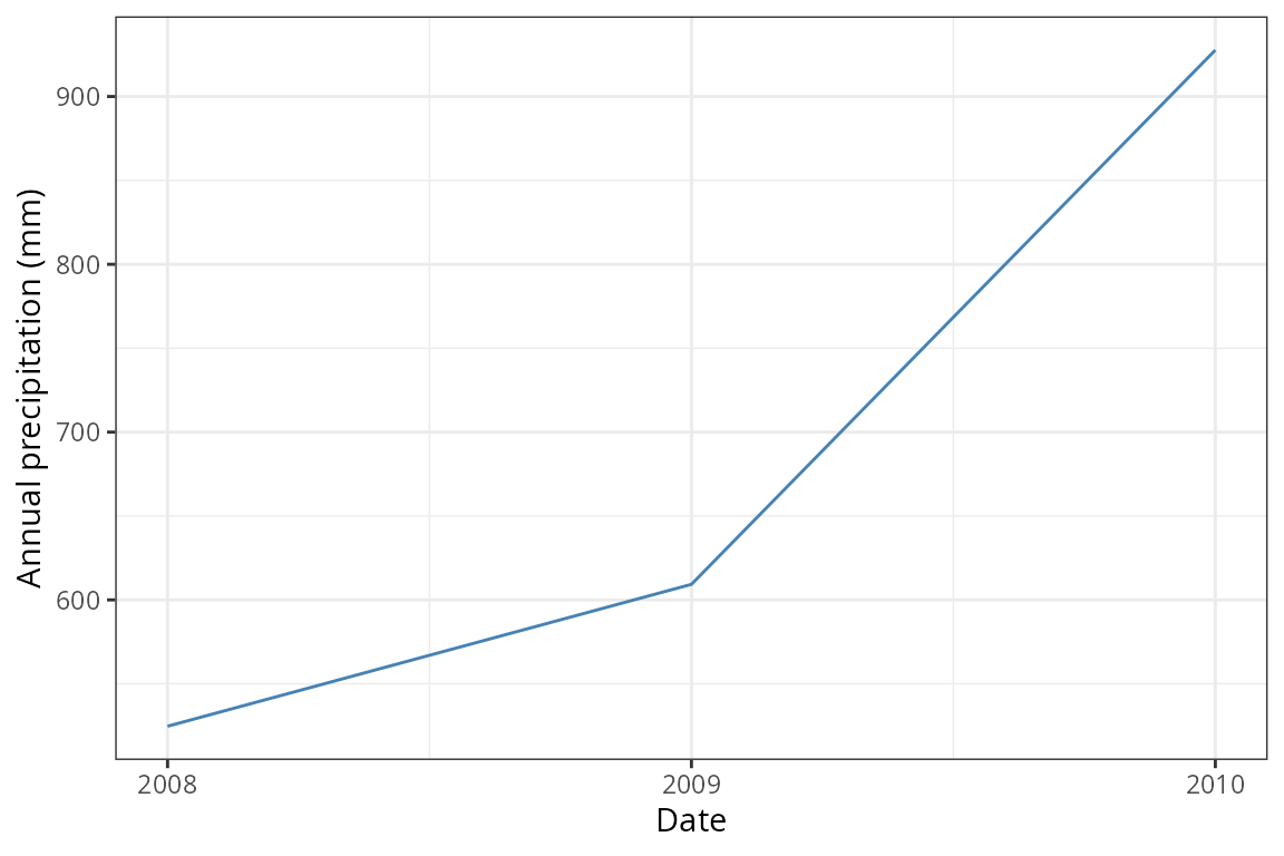 labs(x = "Date", y = "Annual precipitation (mm)") +