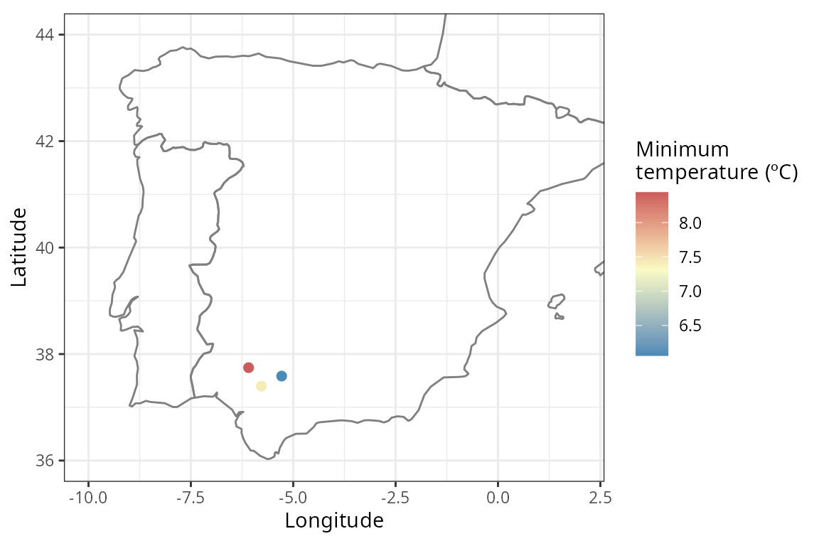 points-df-mat-sf.RmdWith {easyclimate} you can easily download daily, monthly and annual climate data for a given set of points or polygons within Europe. To download and install the latest version of {easyclimate} from GitHub follow the instructions in https://github.com/VeruGHub/easyclimate